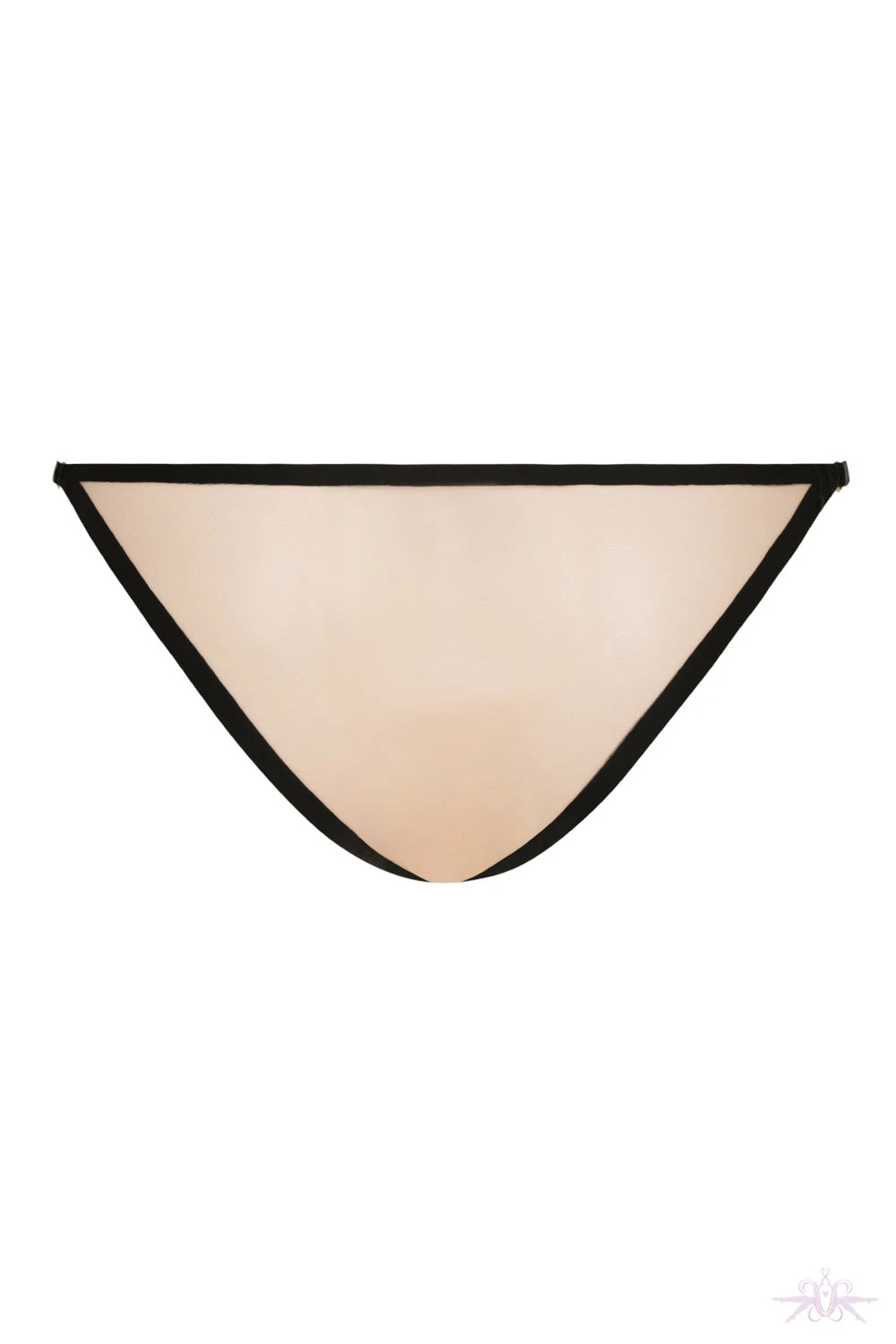 A beautiful sensual brief in a soft and transparent nude coloured tulle from Atelier Amour. Its simple opening on either side with small golden clips and buttons is just so elegant. It is perfect with the matching bra and suspender belt.Â