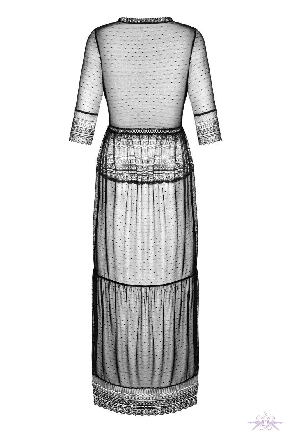 A stunning long black peignoir from Obsessive. The translucent material is so seductive and soft and has a small polka dot design. The 3/4 sleeves are so feminine and the satin belt adds a touch of glamour. Matching long chemise is also available.