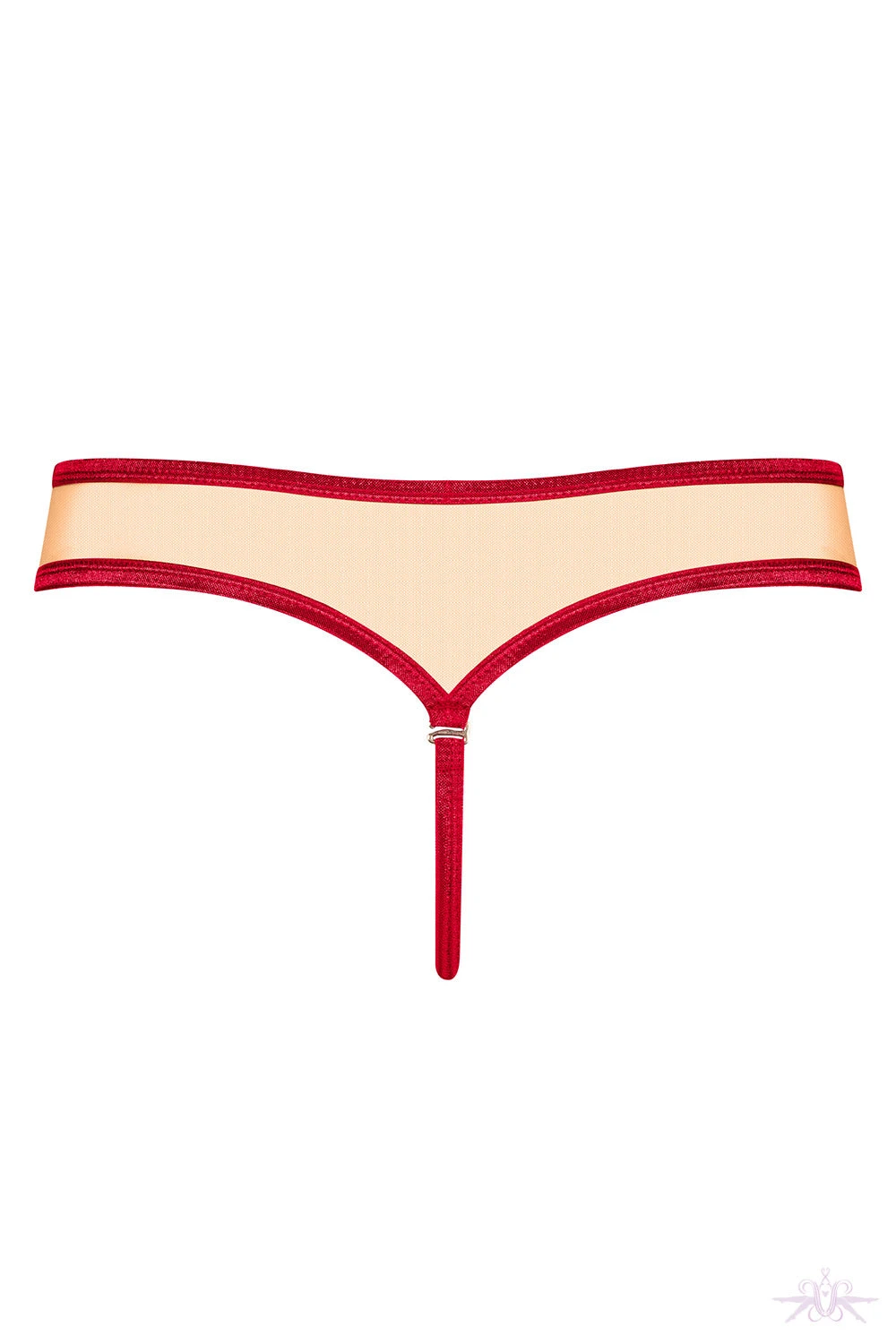 A beautiful sensual red and nude satin thong wit a satin bow from Obsessive.