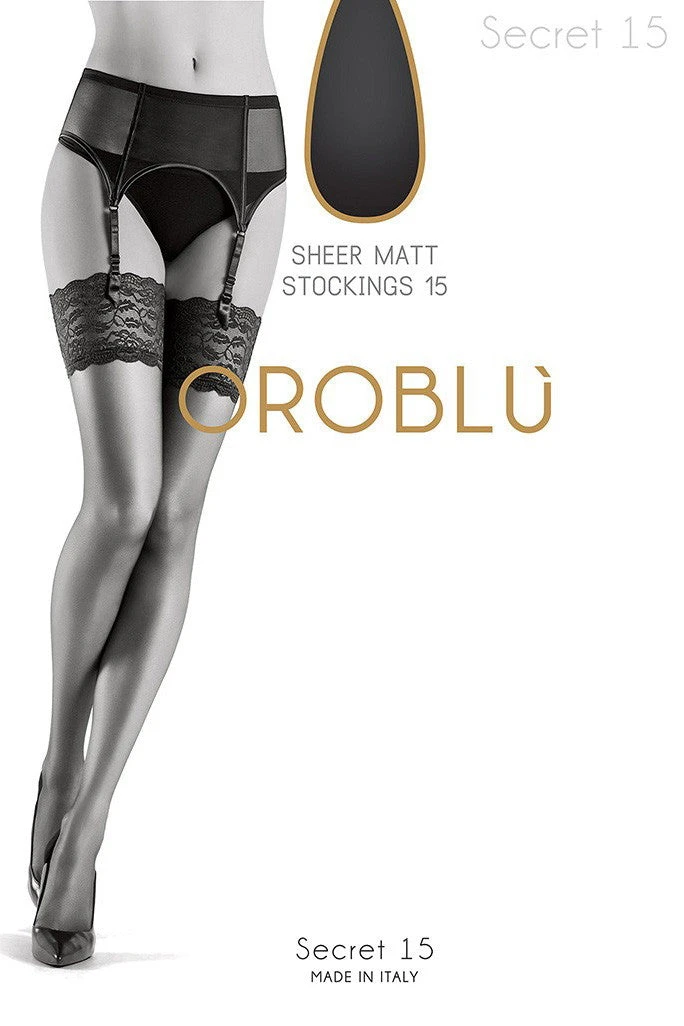 Sheer luxurious Italian stockings with a deep lace top. These 15 denier stockings from Oroblu are extremely elegant and are available in three colours. Very smooth to the touch with a 10cm deep floral design French lace top. They have a slightly reinforced toe and a shaped foot.